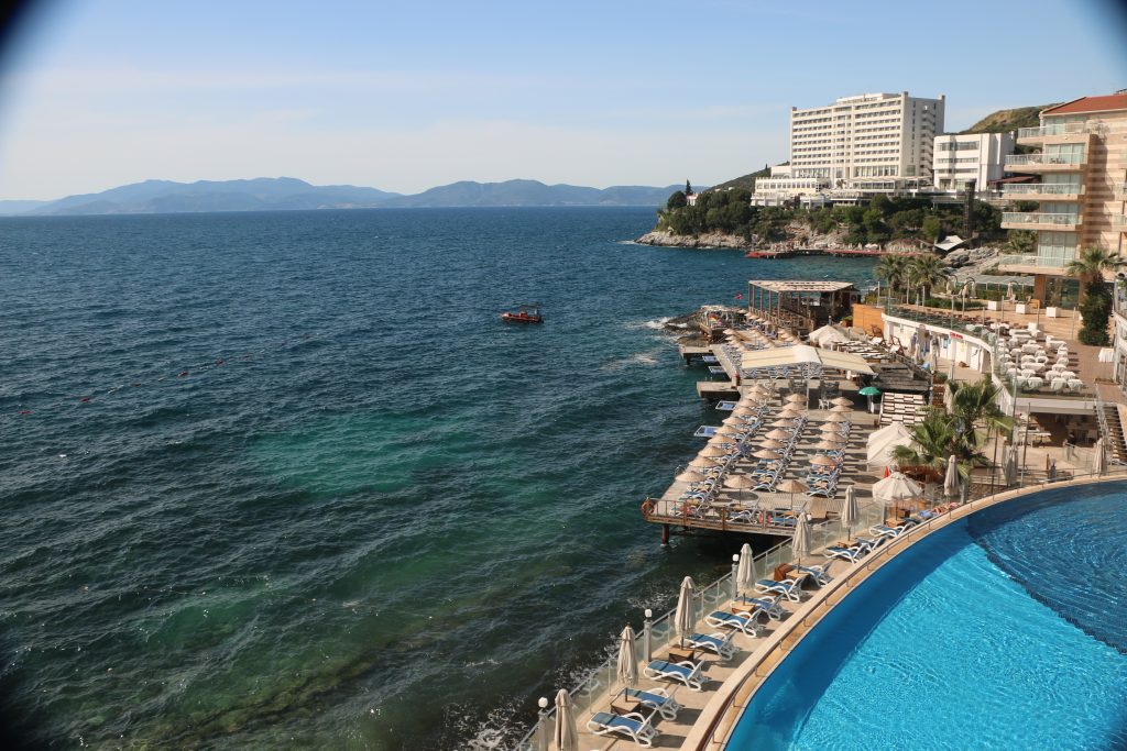 From Izmir we took a luxury bus to Kusadasi, on the Aegean coast south of Izmir. It’s a port city, with cruise ships and large hotels, plenty of shopping and places to eat. We checked out our room and were happy with the view.