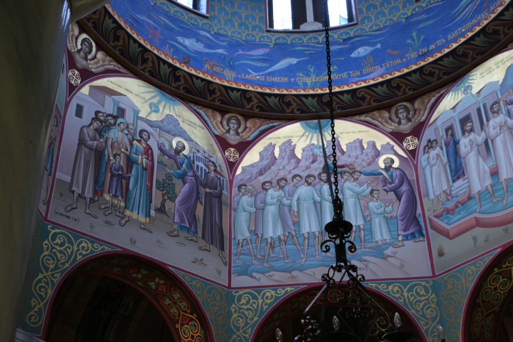 Following this, we toured the building which can be used for weddings and baptisms. It’s a little ostentatious for my taste, but the neat thing is that it tells the story of Paul in pictographs around the ceiling for those who couldn’t read.