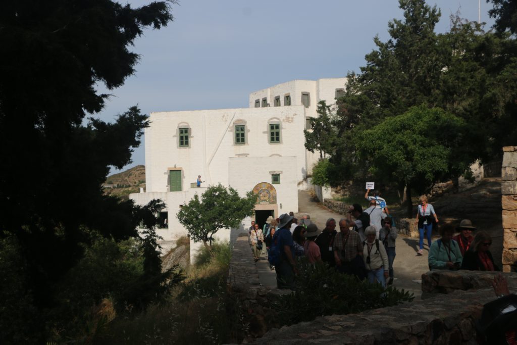 Patmos is a relatively small island not far from Turkey but belongs to Greece. There are about 3000 inhabitants, a single port, and the Monastery of St. John on the highest peak of the island. we boarded a bus and arrived at our first destination of the day, the Cave of the Apocalypse, where some believe John wrote the book of Revelation, even though there is no Biblical support for that.
