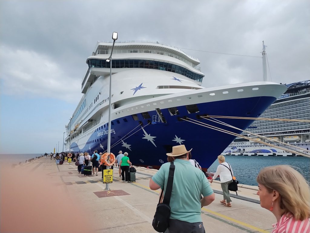 After having breakfast at the hotel, we boarded our bus and drove 10 minutes to the port where our ship, the Celestyal Discovery, was berthed. Upon seeing the ship, we realized that it wasn’t the sailing ship that was one of the options, but a small cruise ship After we boarded, we took part in a mandatory Lifeboat Drill.